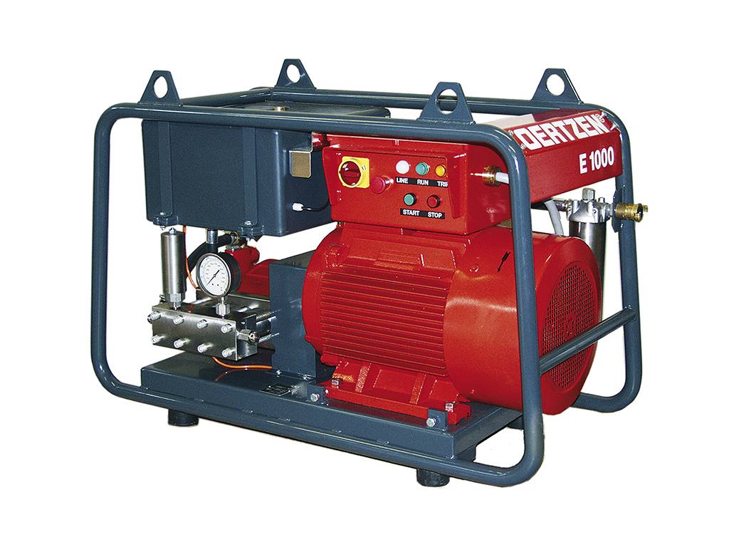 Мощные электронасосные агрегаты сверхвысокого давления с максимальным рабочим давлением 1000 бар. Промышленное исполнение на стальной раме. Шланг, пистолет, копьё в комплекте.
