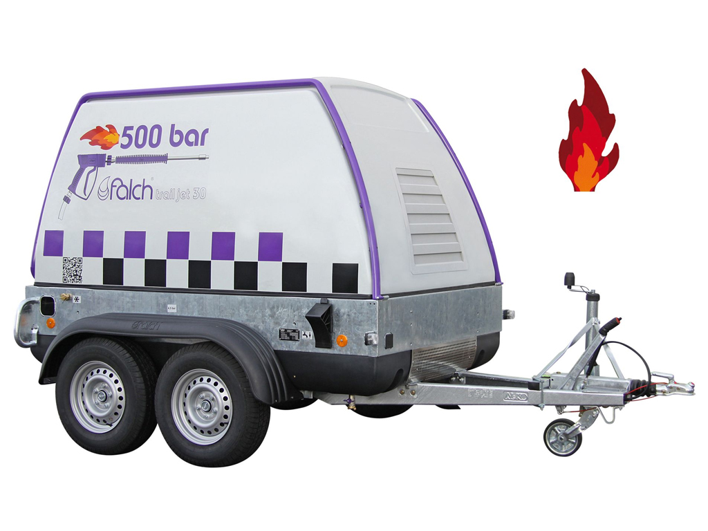 Установка сверхвысокого давления с подогревом воды, смонтированная на автомобильном прицепе, обеспечивает превосходную мобильность и максимальное удобство выполнения работ. Эти экономичные и надежные установки идеально удовлетворяют требованиям строительных компаний, промышленных и коммунальных предприятий.