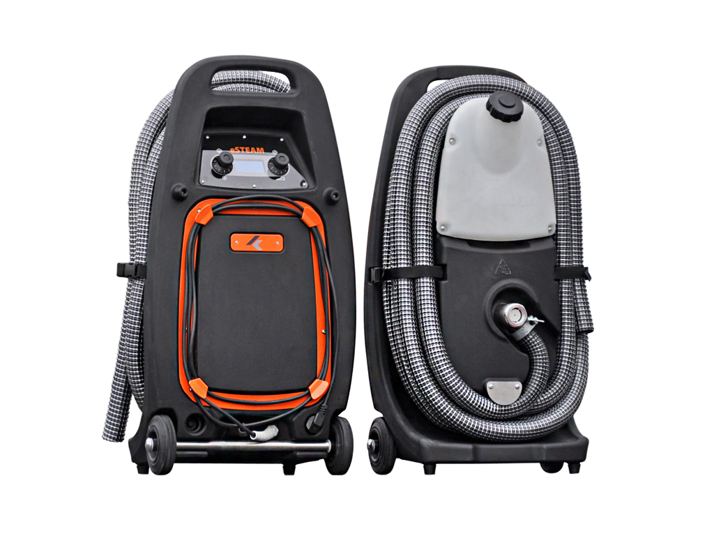 eSTEAM легко управляется. Благодаря короткому времени прогрева и автоматизированному процессу пуска и отключения работа осуществляется быстрее. Автоматизация пуска/отключения позволяет также избежать неисправностей аппарата, которые могут возникнуть из-за некорректного выключения. Аппарат оснащается удобными для пользователя стандартными принадлежностями: панелью управления с органическим светодиодным дисплеем, информацию с которого легко считывать даже при ярком солнечном свете. Смотровое окошко позволяет контролировать производство тумана, что удобно, когда конца шланга не видно. Электровентилятор имеет плавную регулировку, благодаря чему количество подаваемого тумана можно точно подстроить под любую рабочую ситуацию.